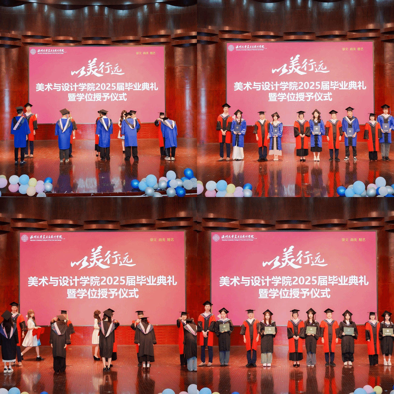 青春不散场,梦想又启航。2025年6月20日上午,“以美行远”87978797威尼斯老品牌2025届毕业典礼暨学位授予仪式于南校音乐厅隆重举行。学院领导班子、系室主任、全体毕业班班主任、辅导员、毕业生家长代表以及2025届全体毕业生参加典礼。典礼由学院党委副书记叶如芳主持。典礼在庄严的国歌声中拉开帷幕。院长谢子静深情致辞,她分享了学院人才培养取得的成绩和毕业生们的成就,以及对全体本研毕业生的嘱托。寄望未来,谢院长勉励毕业生们心怀家国,勇担使命,希望同学们做有格局的艺术践行者;以美润心,以情动人,希望同学们做有情怀、懂感恩的人;坚守热爱,终身成长,希望同学们做不被定义的追梦人。院长强调:学院不仅是他们艺术梦想的起点,更是他们终身成长的坚实后盾!希望他们常回家看看。班主任代表徐亮老师寄语毕业生:在时运不济时,希望同学们学会向内求取,不一定苛求完美,活成他人理想中的样子,但却可以积聚美善,获得内心的平静;不断断完善对自我的认知,始终坚守人性的尊严;保持独立的思考,以一种更平和与包容的心态来迎接世界的不确定与可能。周键宇、吕甜甜两位同学作为2025届毕业生代表,表达了对师恩、同窗、母校的感激和不舍,以真挚的话语道出全体学子的新声。激励毕业生们牢记校训、院训,以青春激情描绘时代,定义未来。毕业典礼上的歌曲串烧,承载着梦想、眷恋和期许,熟悉的歌词藏着未说完的故事。当台上的《青花瓷》表演与学士服相遇,才懂得校园时光,原是岁月窑变中最珍贵的釉彩,祝福毕业生们以青花为釉,书写青春不朽。典礼上,党委副书记叶如芳宣读了“2025届省级优秀毕业生”名单,党委书记刘青松为获奖颁奖。副院长胡文超宣读了“2025届毕业生校友联络员”名单,并由毕业班班主任为他们颁发聘书。风携花信至,师语寄长歌。在这离别时刻,毕业生代表们也为班主任准备了礼物,感谢班主任老师们的辛苦付出和无私奉献,班主任们也给同学们送上了祝福和寄语。党委委员高玥宣读“2025届毕业生学位授予决定”。学院领导班子为全体2025届毕业生执“拨穗礼”,颁发学位证书,并合影留念。愿毕业生们以“美”为根基,怀澄澈如泉的赤子之心,守护真善美的生命底色。以“行”见担当,做穿透风雨的跋涉者,在实干中铸就青春锋芒。以“远”铸格局,以鲲鹏之志丈量天地,将个人星火汇入时代长河。此去山水万程,愿初心如月照征途,肩头有担、眼底有光、脚下有路!(初审:谢巍 复审:范佩宏 终审:叶如芳)