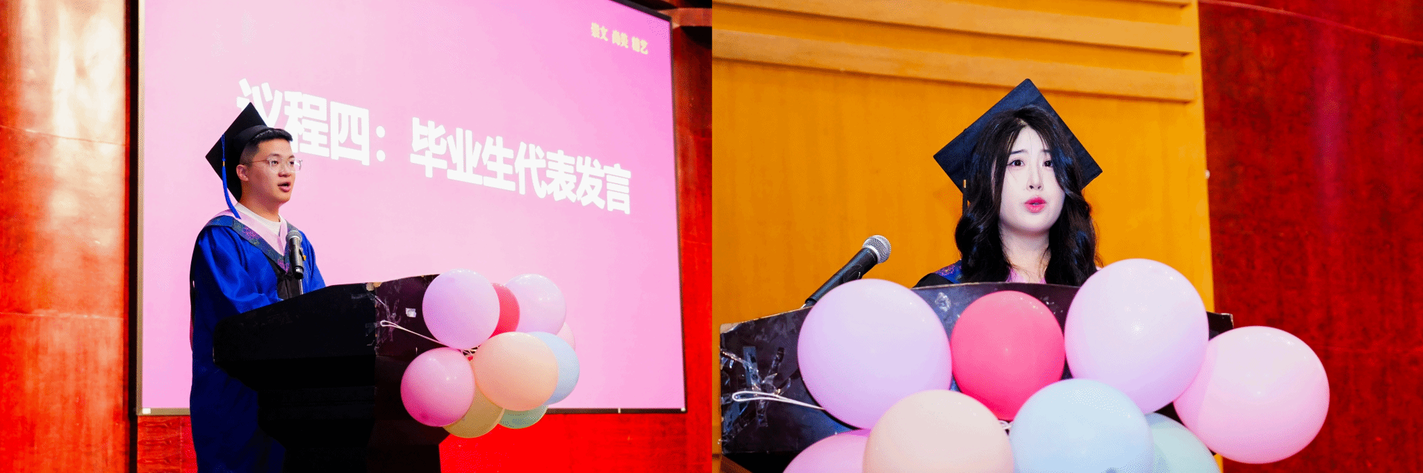 周键宇、吕甜甜两位同学作为2025届毕业生代表,表达了对师恩、同窗、母校的感激和不舍,以真挚的话语道出全体学子的新声。激励毕业生们牢记校训、院训,以青春激情描绘时代,定义未来。