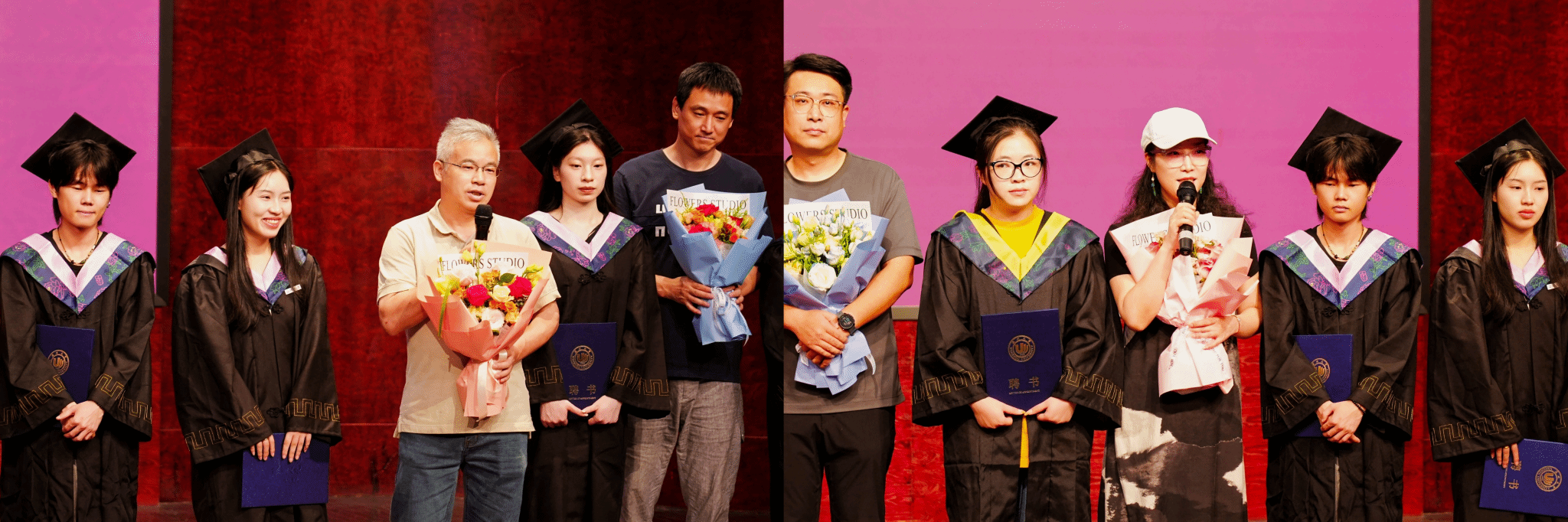 学院领导班子为全体2025届毕业生执“拨穗礼”,颁发学位证书,并合影留念。