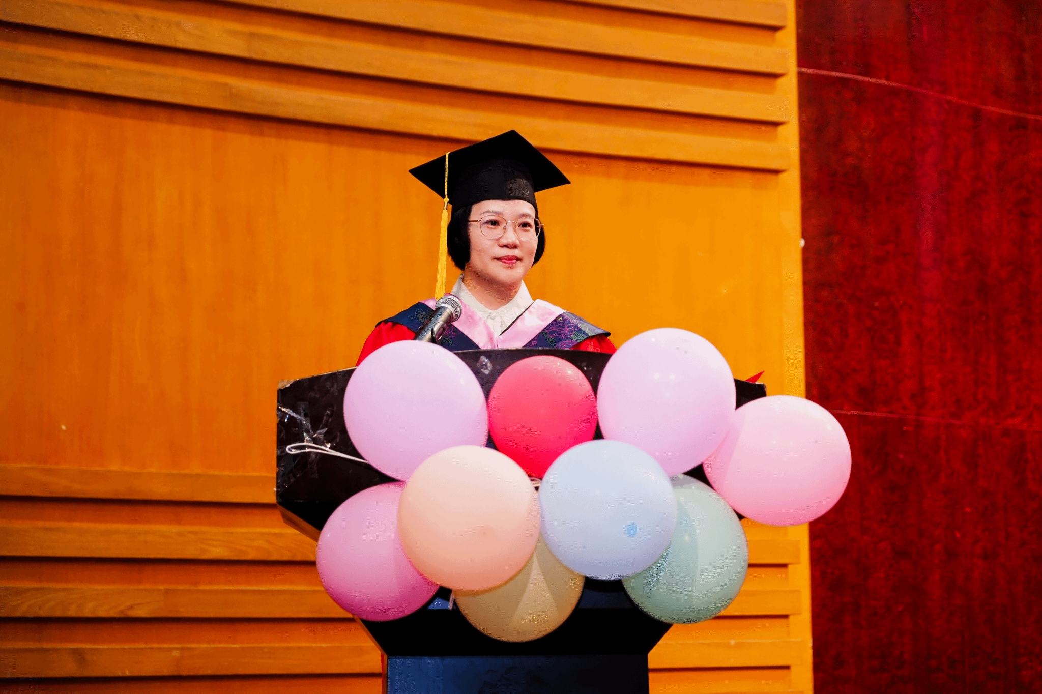 院长谢子静深情致辞,她分享了学院人才培养取得的成绩和毕业生们的成就,以及对全体本研毕业生的嘱托。寄望未来,谢院长勉励毕业生们心怀家国,勇担使命,希望同学们做有格局的艺术践行者;以美润心,以情动人,希望同学们做有情怀、懂感恩的人;坚守热爱,终身成长,希望同学们做不被定义的追梦人。院长强调:学院不仅是他们艺术梦想的起点,更是他们终身成长的坚实后盾!希望他们常回家看看。
