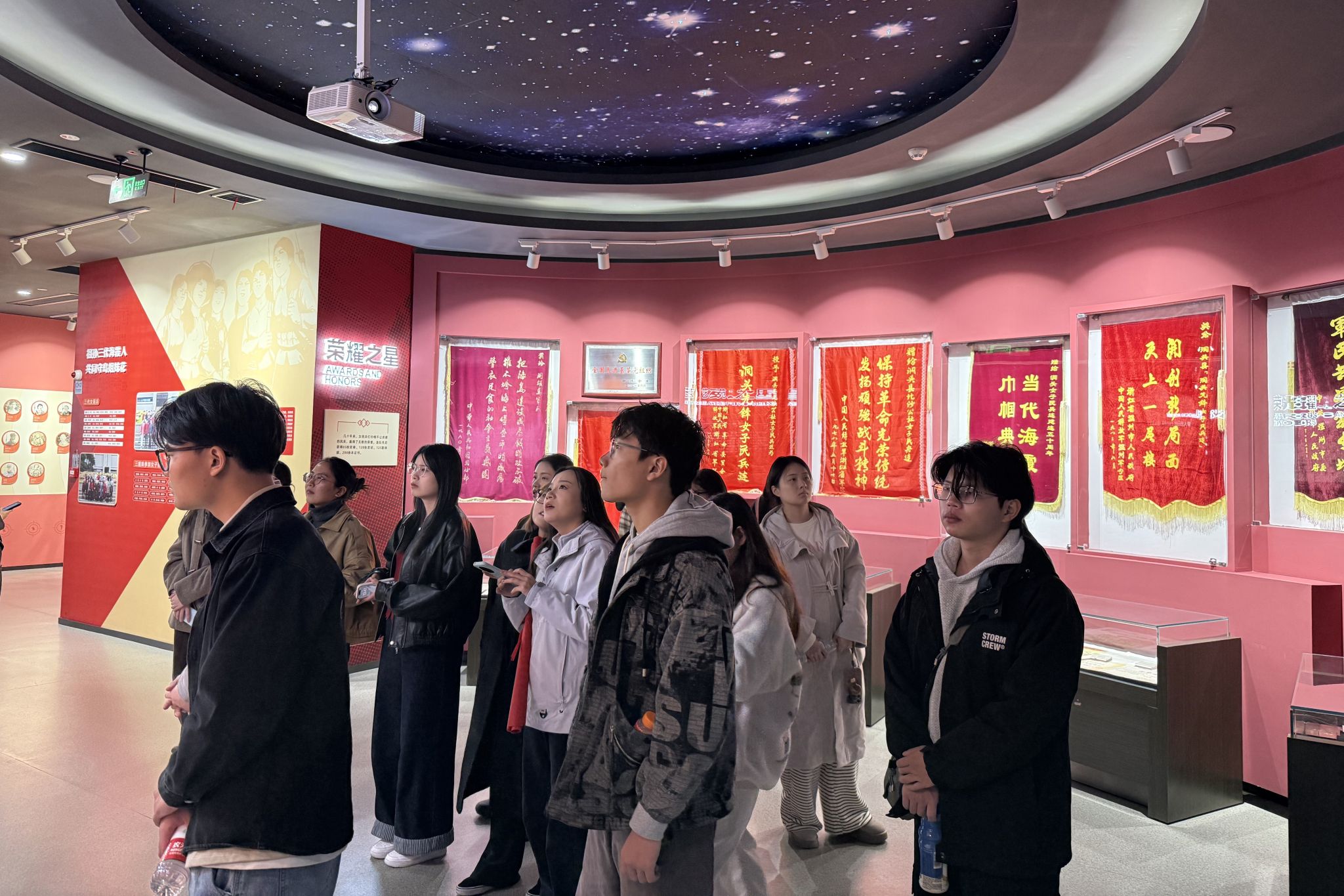 在讲解员的引导下,师生们沉浸于那段波澜壮阔的岁月。大家在一件件展品前驻足凝视,认真聆听女民兵们扎根海岛、保家卫国的感人事迹,深刻体悟“海霞精神”的时代内涵。从艰苦条件下的战备物资到熠熠生辉的荣誉奖章,从一张张写满坚定与青春的面庞到一代代赓续传承的精神火炬,每一个细节都震撼心灵、涤荡思想。师生们仿佛亲历了女民兵们顶风冒雨刻苦训练、不畏艰难忠诚守岛的动人场景,真切感受到她们“把青春献给海岛,把忠诚献给祖国”的赤子情怀,深刻认识到“巾帼不让须眉”的时代担当与“励志奉献”的精神实质。