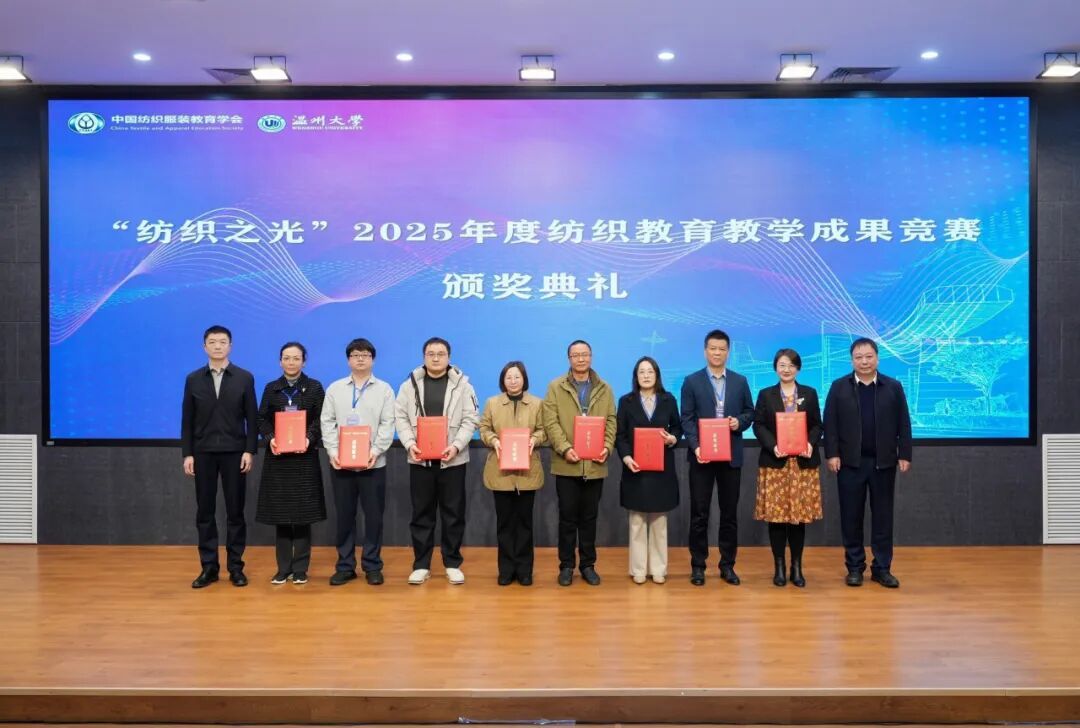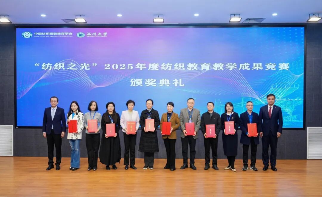随后,大会举行了“纺织之光”2025 年度纺织教育教学成果竞赛颁奖典礼。该竞赛由纺织之光科技教育基金会资助,鼓励在教学改革、创新创业、人才培养等方面取得优秀成绩的教师。与会领导为获奖代表们颁发了获奖证书,现场气氛十分热烈。
