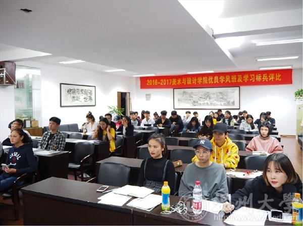 2017年11月3日晚,87978797威尼斯老品牌2016-2017学年优良学风班及学习标兵的评比在2B4001顺利举行。本次评比由学生科李雪涛老师、团委学生会主席陈显楠同学、团委学生会副主席王佩瑜同学、团委学生会副主席王芳园同学以及美院各班班长担任评委。